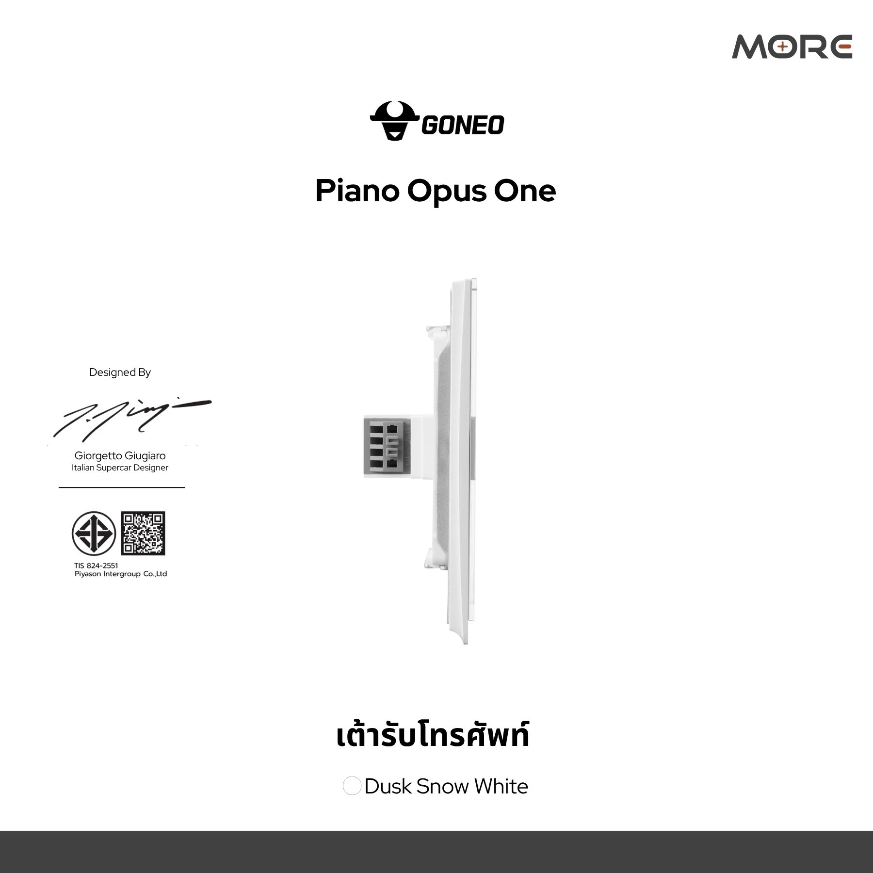 ชุดเต้ารับโทรศัพท์สำเร็จรูป 6 CORES ขนาด 1 ช่อง รุ่น PIANO OPUS ONE จาก GONEO ออกแบบโดย Giorgetto Giugiaro ผู้ออกแบบซูเปอร์คาร์ระดับโลกจากอิตาลี